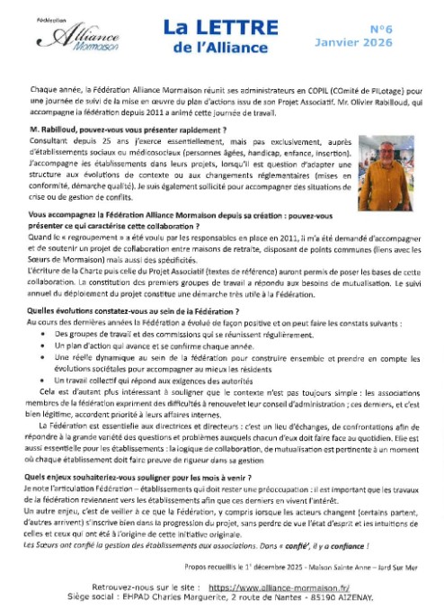 Les administrateurs de la Fédération Alliance Mormaison ainsi que les directeurs et directrices des établissements vous présentent la lettre d’informations qui vous permettra de mieux connaître ce qu’est la Fédération, quelles sont ses actions, ses engagements et les personnes qui, tout au long de l’année, s’y investissent.